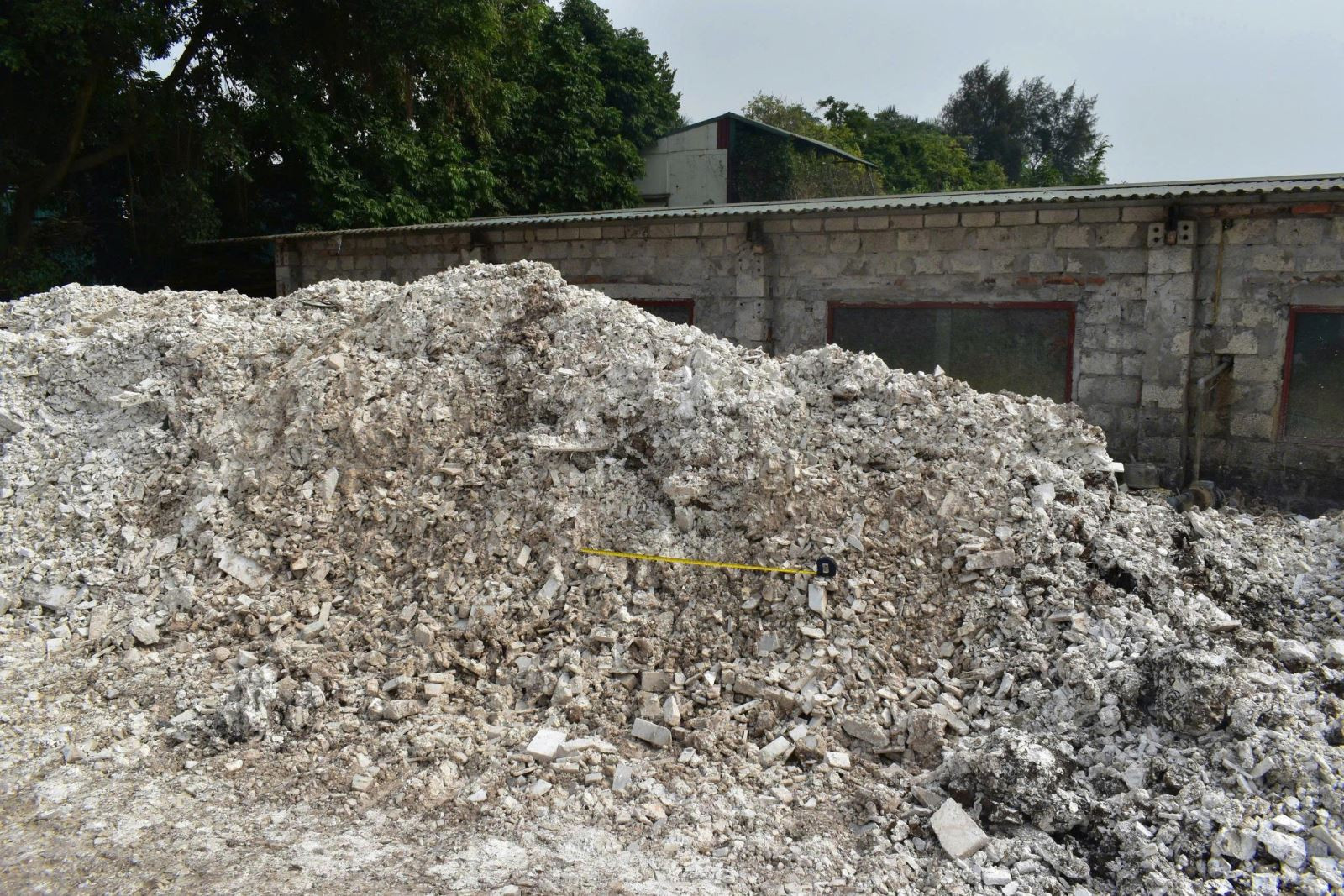 Mở rộng kiểm tra tại điểm tập kết chất thải bên trong một doanh nghiệp ở Tổ dân phố Bến, phường Thượng Hồng, tỉnh Hưng Yên, lực lượng chức năng tiếp tục phát hiện thêm một máy xúc và bốn xe tải đang chờ bốc dỡ chất thải để vận chuyển về san lấp tại khu vực ao của gia đình bị can.