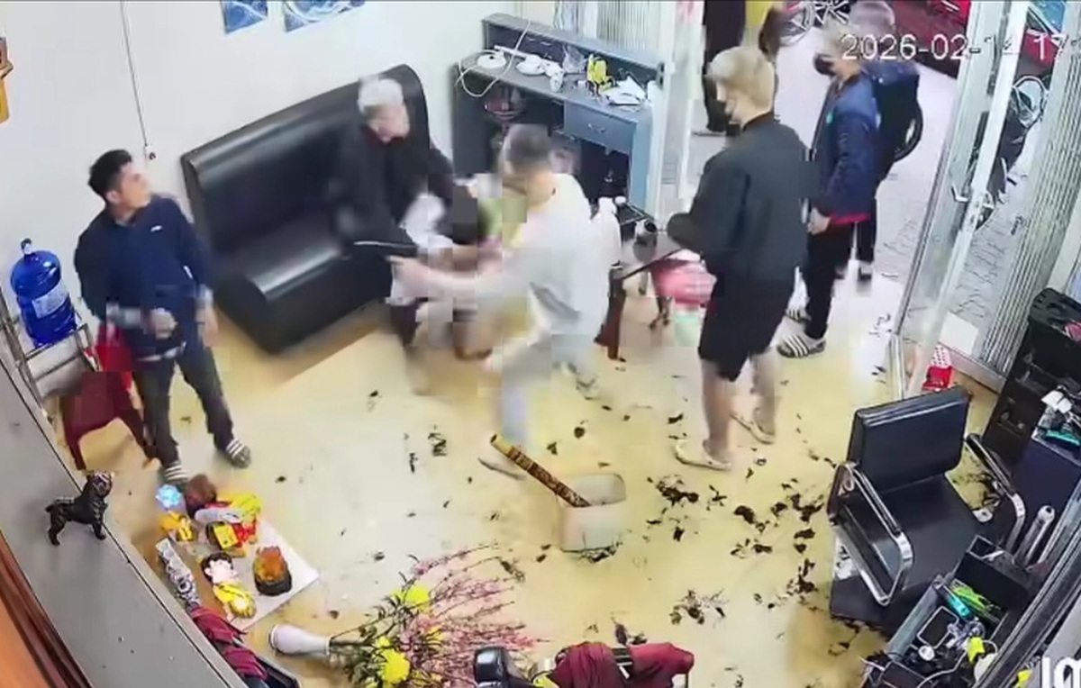Theo nội dung đoạn video trích xuất từ camera tại một tiệm cắt tóc trên địa bàn phường Hồng Châu (tỉnh Hưng Yên), sự việc xảy ra vào khoảng 17h26 ngày 14/2. Thời điểm này trong tiệm có 3 người. Bất ngờ, một người đàn ông mặc quần áo màu ghi mở cửa, ra lệnh cho "đàn em" đứng bên ngoài: "đưa đồ cho tao".