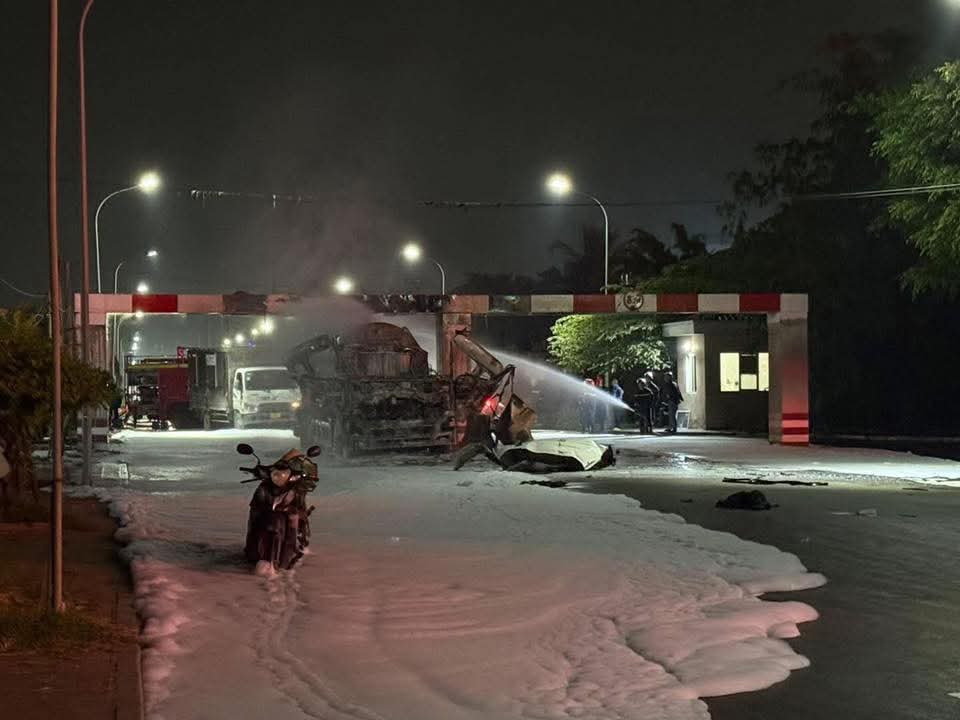 Theo cơ quan chức năng, tài xế xe bồn kịp thời thoát ra ngoài an toàn, không có thương vong về người.