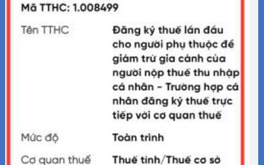 Bước 2. Chọn Kê khai hồ sơ đăng ký thuế-Mã TTHC 1.008499