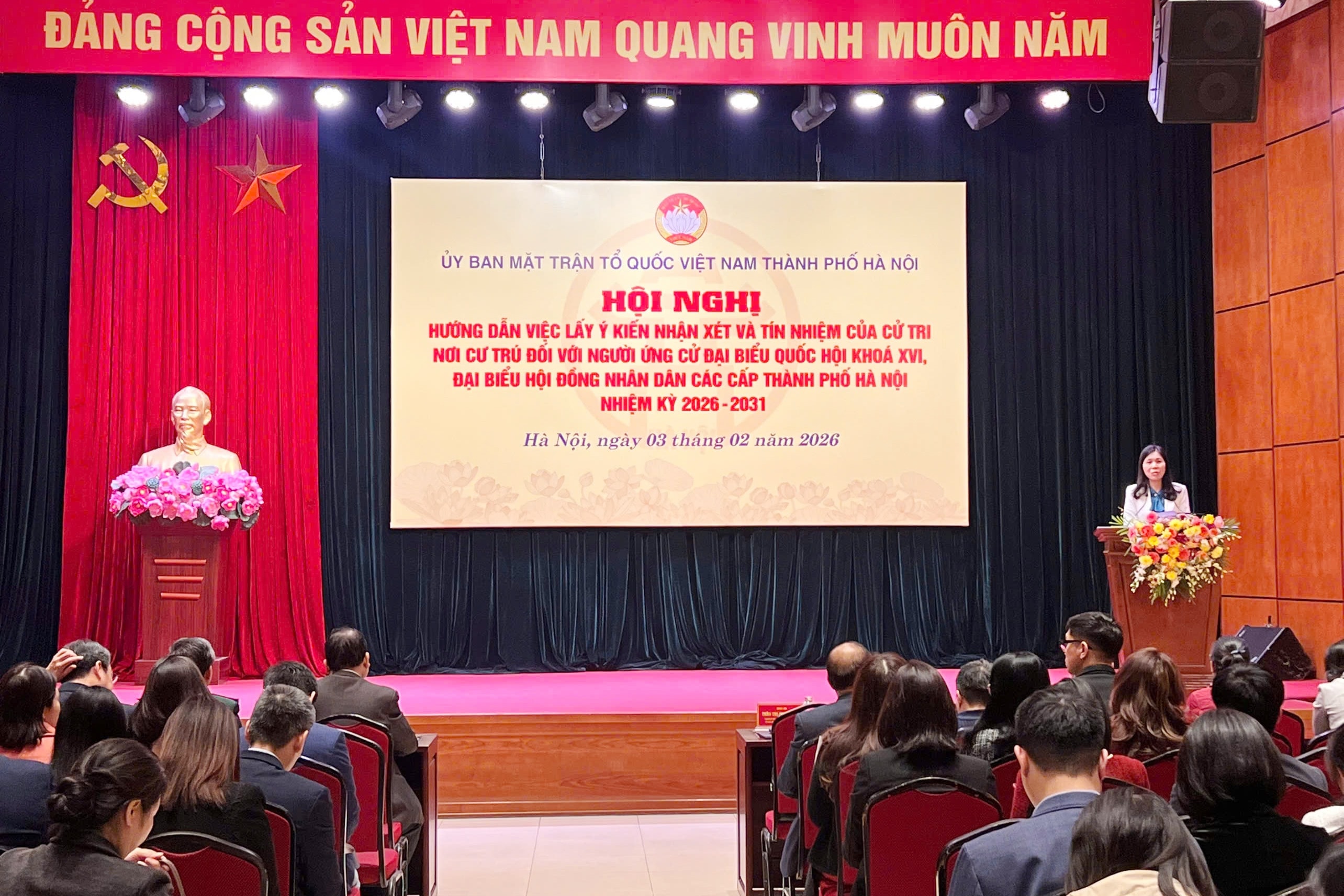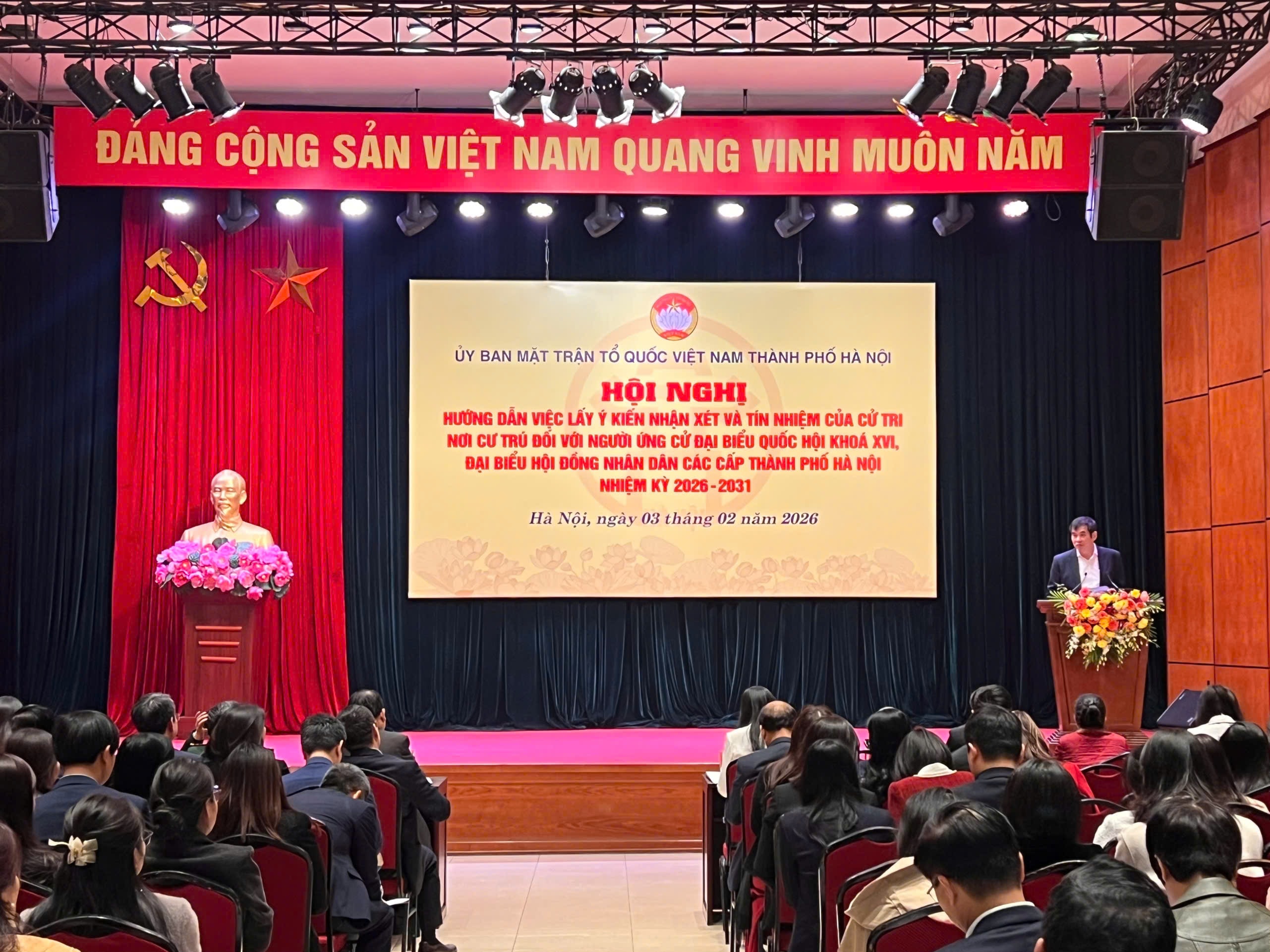 Tại hội nghị, các đại biểu đã nghe Trưởng ban Dân chủ, Giám sát và Phản biện xã hội, Ủy ban MTTQ Việt Nam thành phố Hà Nội Phạm Ngọc Quỳnh hướng dẫn chi tiết việc lấy ý kiến nhận xét và tín nhiệm của cử tri nơi cư trú đối với người ứng cử ĐBQH khóa XVI, đại biểu HĐND các cấp thành phố Hà Nội nhiệm kỳ 2026 - 2031. Các đại biểu cũng đã trao đổi nhằm làm rõ những nội dung, quy trình, vướng mắc có thể phát sinh trong quá trình lấy ý kiến nhận xét và tín nhiệm của cử tri nơi cư trú đối với người ứng cử ĐBQH khóa XVI, đại biểu HĐND các cấp thành phố Hà Nội nhiệm kỳ 2026 – 2031.