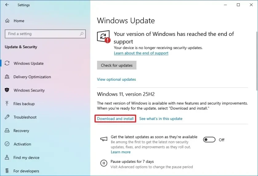 Microsoft đã xác nhận sẽ ngừng hỗ trợ cho Windows 10 vào ngày 14 tháng 10 năm 2025. Người dùng có máy tính đáp ứng yêu cầu phần cứng có thể nâng cấp lên Windows 11 phiên bản 25H2 (Bản cập nhật 2025) để tiếp tục nhận các bản cập nhật bảo mật và tính năng mới. Có ba phương pháp chính để thực hiện việc này: thông qua Windows Update, công cụ Installation Assistant (Trợ lý Cài đặt) hoặc sử dụng tệp ISO.