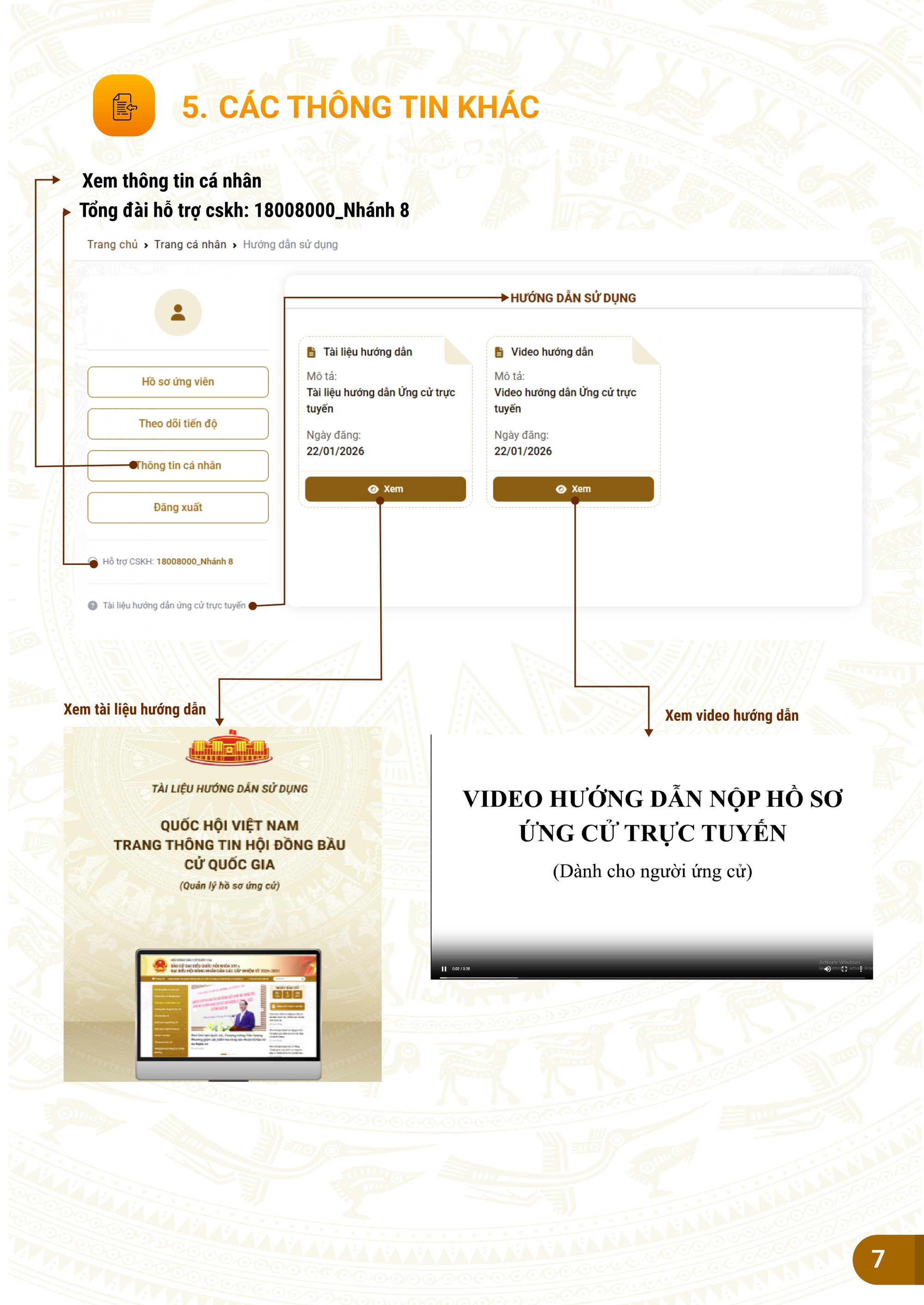 Trong quá trình thực hiện, nếu có vướng mắc, người ứng cử có thể tham khảo mục "Hướng dẫn sử dụng" ngay trên trang web hoặc liên hệ hotline hỗ trợ được niêm yết tại Cổng thông tin của Hội đồng bầu cử quốc gia.