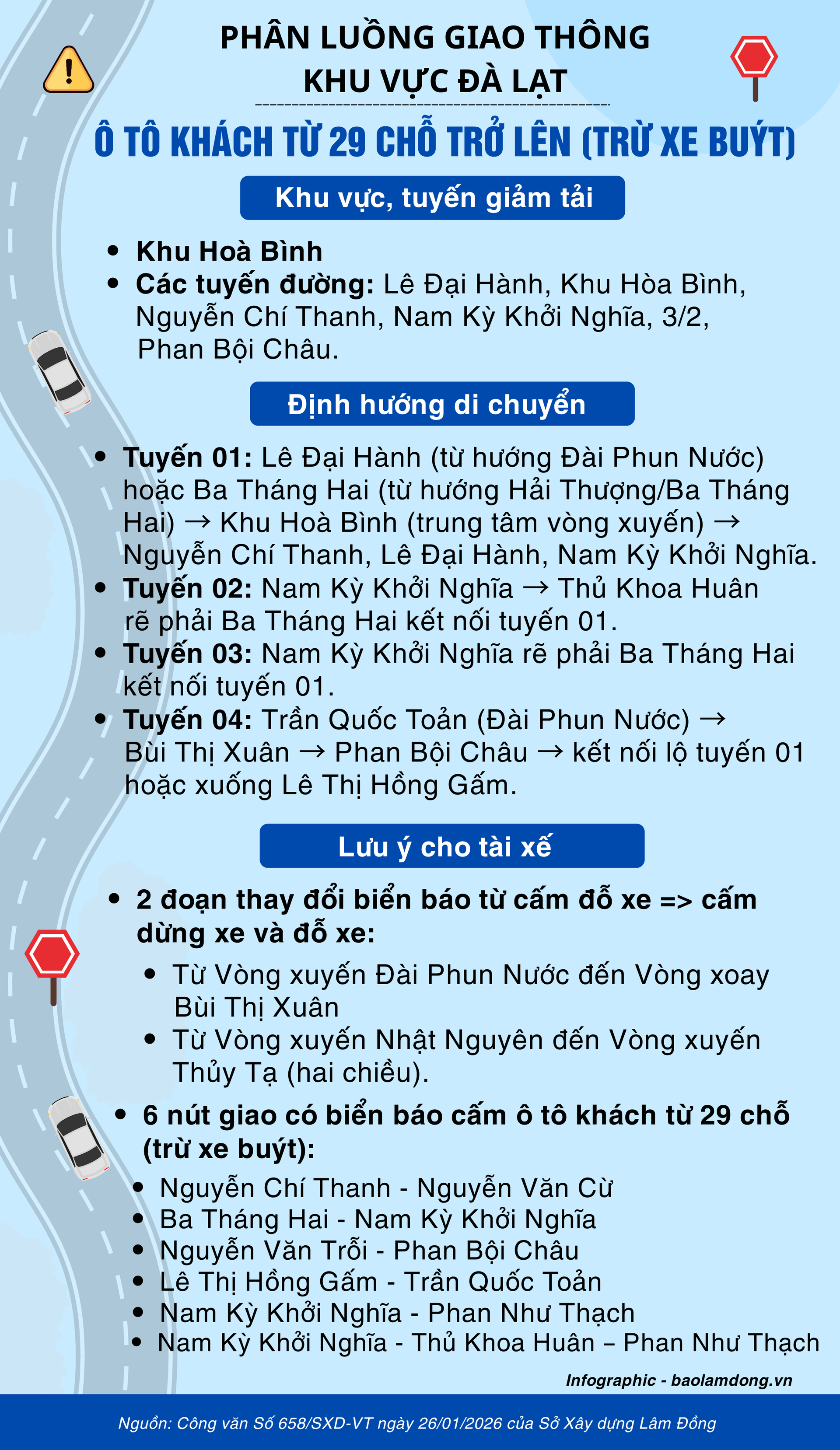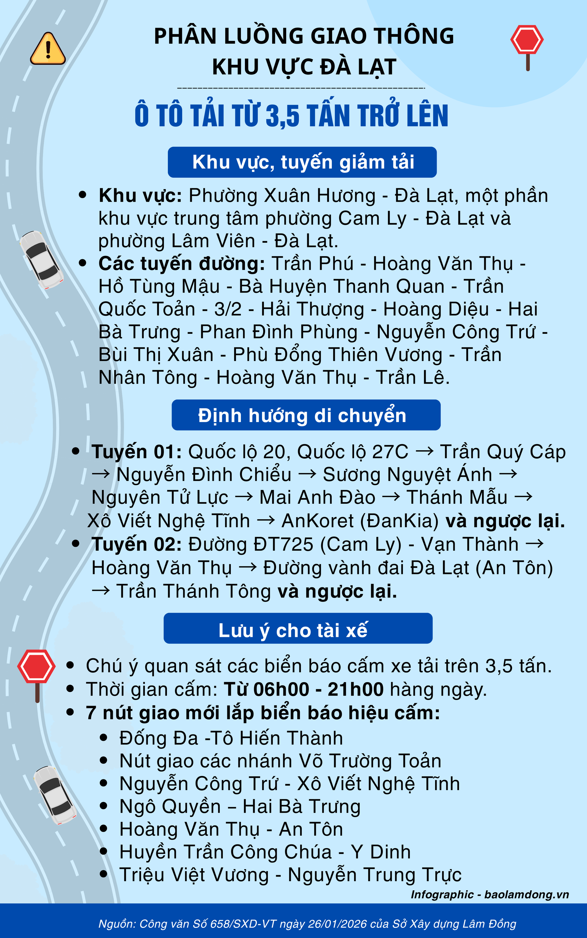 Hướng dẫn phân luồng giao thông tại một số khu vực, tuyến đường ở Đà Lạt