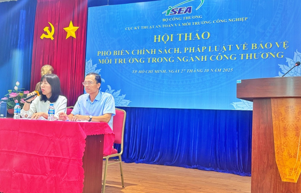Phát biểu khai mạc Hội thảo bà Đỗ Phương Dung – Phó Cục trưởng Cục Kỹ thuật an toàn và Môi trường công nghiệp (Cục ATMT) nhấn mạnh phát triển công nghiệp đi đôi với bảo vệ môi trường không chỉ là trách nhiệm pháp lý mà còn là trách nhiệm xã hội và ý thức của mỗi doanh nghiệp. Theo Phó Cục trưởng Cục ATMT việc thực thi nghiêm túc các quy định của Nhà nước về khí thải và quản lý cơ sở dữ liệu môi trường sẽ góp phần quan trọng giúp ngành Công Thương đạt được mục tiêu giảm phát thải khí nhà kính, hướng tới nền kinh tế tuần hoàn và phát thải carbon thấp theo định hướng của Chính phủ đến năm 2050.