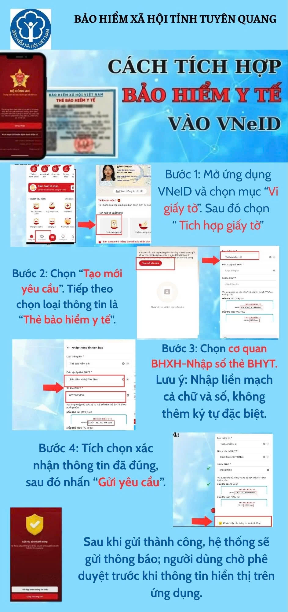 Việc tích hợp thẻ bảo hiểm y tế vào ứng dụng VNeID giúp người dân sử dụng thẻ BHYT điện tử thay thế thẻ giấy khi đi khám, chữa bệnh, từ đó tiết kiệm thời gian, giảm thủ tục và tránh rủi ro quên hoặc mất thẻ.