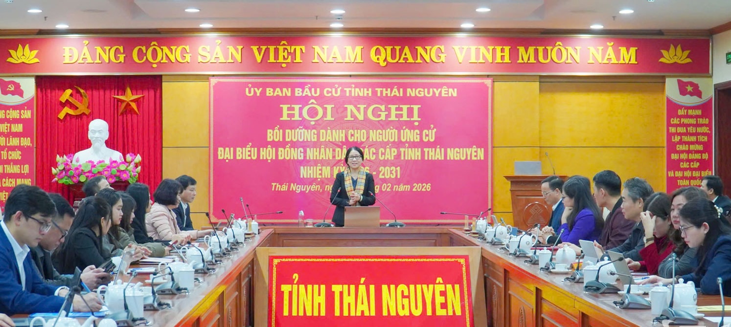 Ủy ban Bầu cử tỉnh Thái Nguyên tổ chức Hội nghị bồi dưỡng dành cho người ứng cử đại biểu HĐND các cấp tỉnh Thái Nguyên, nhiệm kỳ 2026-2031. Ảnh: Thu Trà