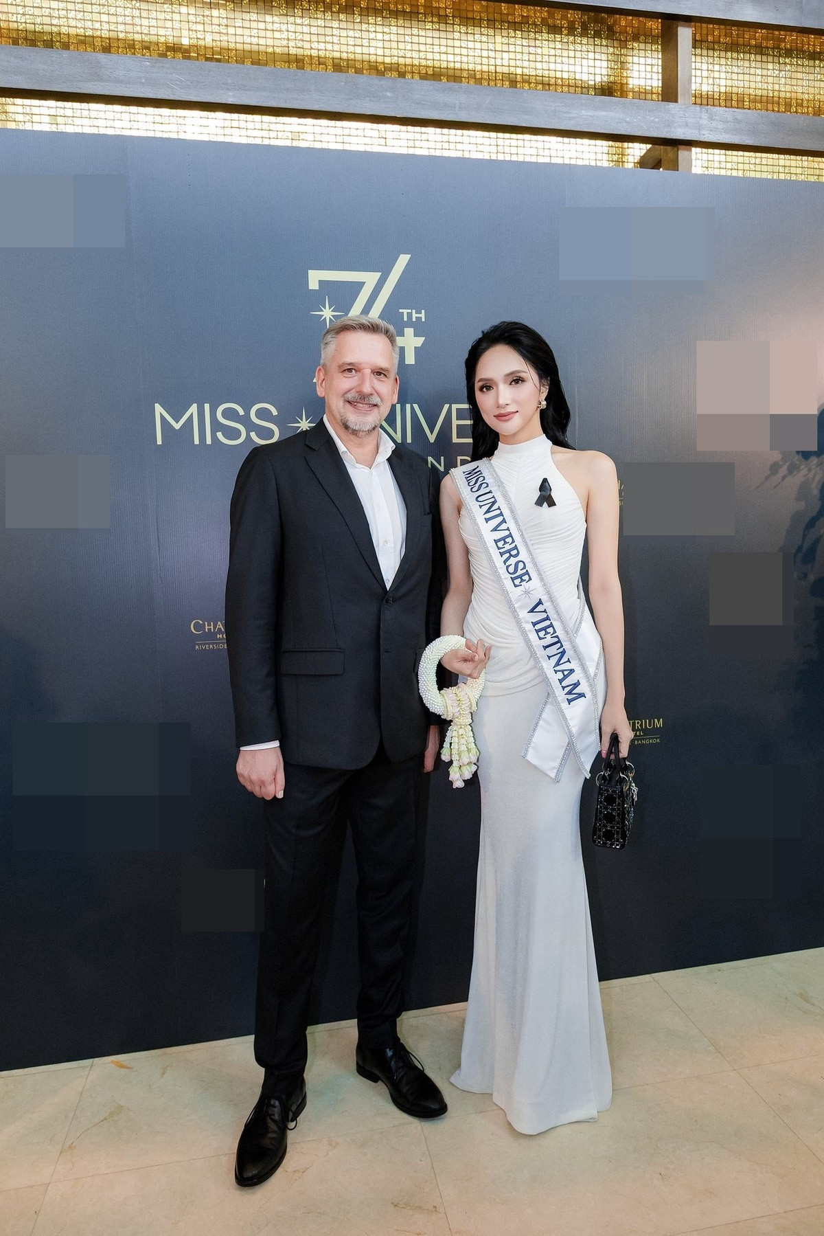 Hương Giang được truyền thông săn đón ở Miss Universe 2025. Ảnh: FB Hương Giang.