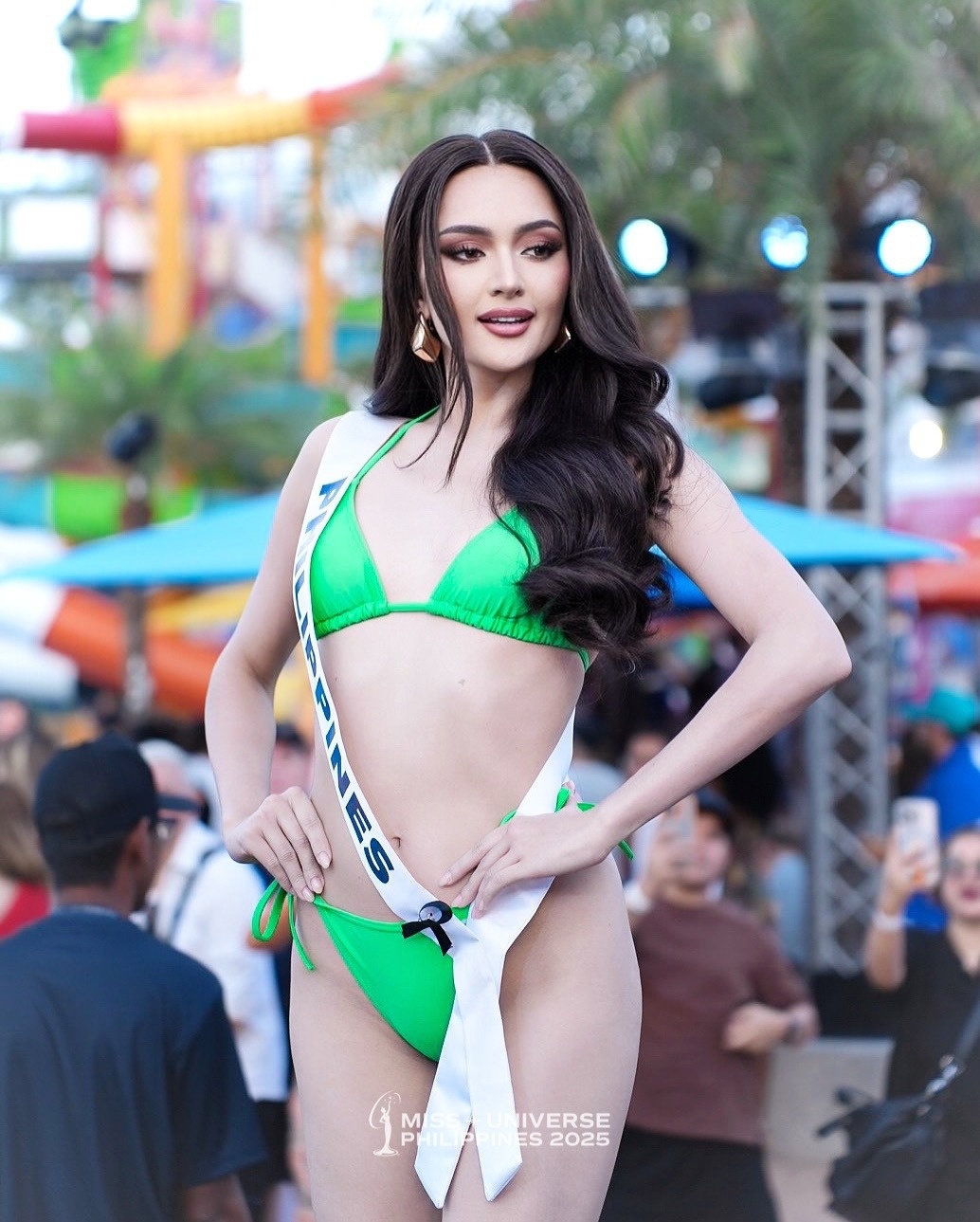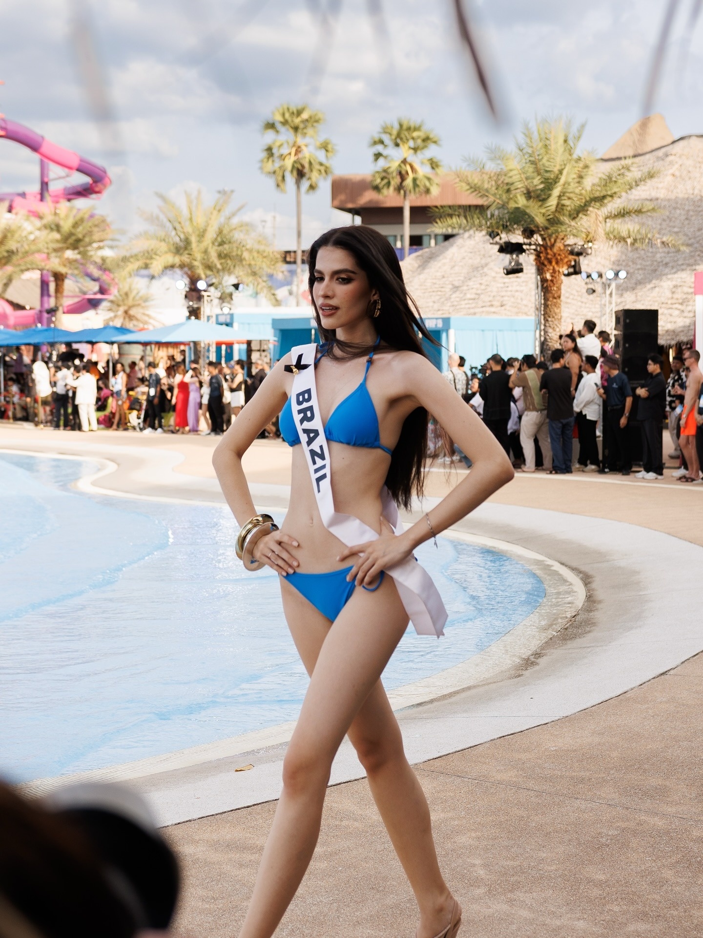 Ngày 14/11, phần thi trình diễn swimsuit diễn ra trong khuôn khổ hoạt động của Miss Universe 2025 được tổ chức tại Thái Lan. Dàn thí sinh khoe hình thể trong trang phục đồ bơi, catwalk trên địa hình phức tạp có cầu thang cạnh hồ bơi.