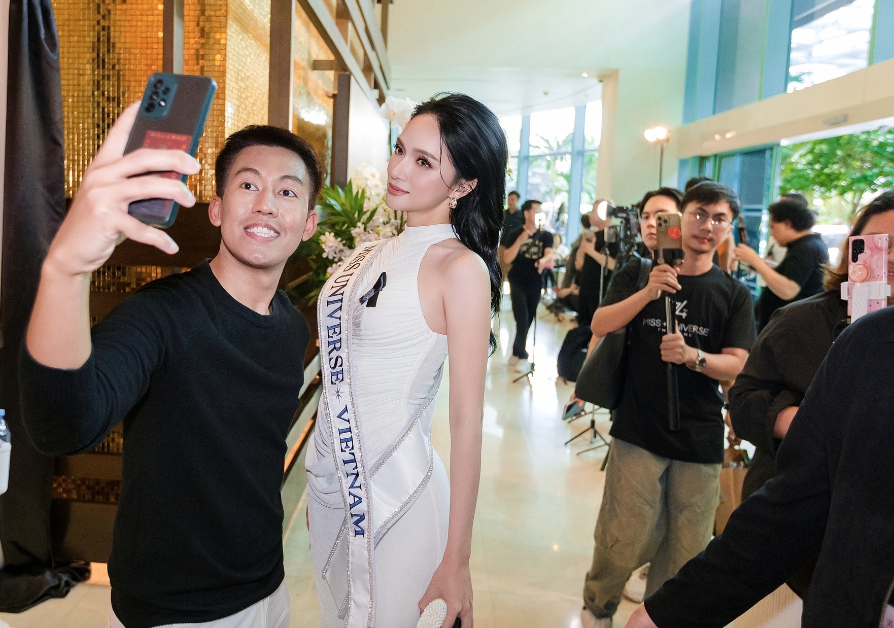 Đặc biệt, người đẹp Việt Nam cũng không ngần ngại dừng chân để trò chuyện, tạo dáng chụp ảnh với các fan hâm mộ bên ngoài khách sạn. Phong thái tự tin và năng lượng tích cực của cô nhanh chóng thu hút sự chú ý tại cuộc thi năm nay.