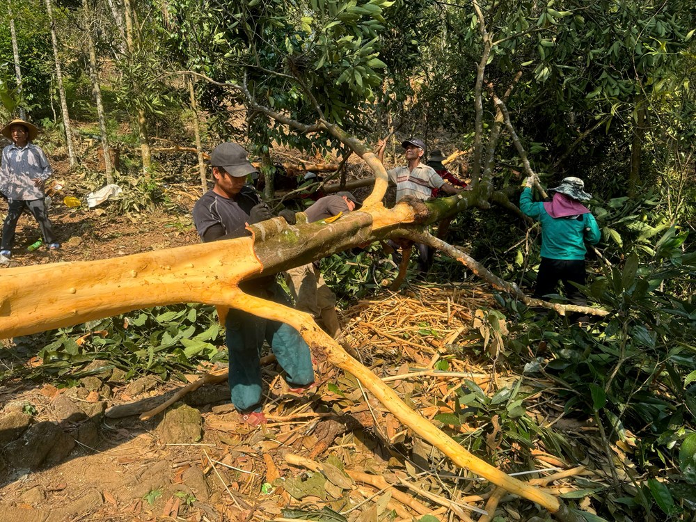 Một điểm nhấn trong mùa vụ năm nay là việc khai thác một cây quế cổ thụ hơn 50 năm tuổi. Với đường kính lớn hơn vòng tay người ôm và chiều cao gần 30 m, cây quế này cho sản lượng vỏ ước tính từ 500–700 kg.