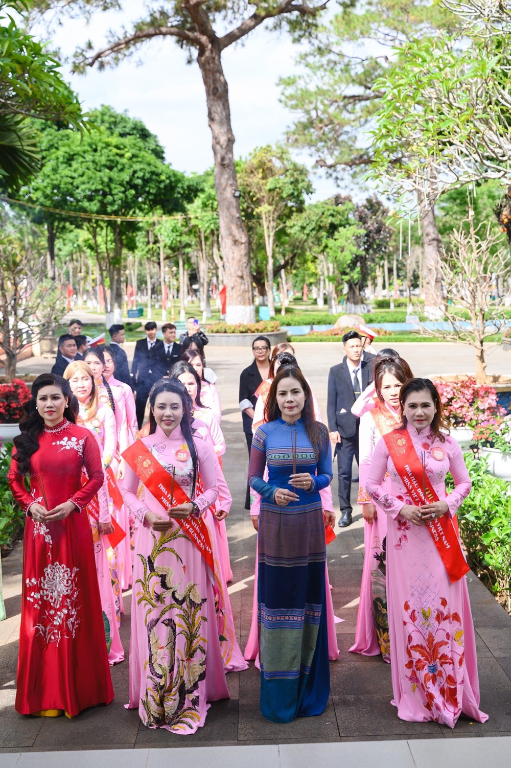 Giữa không gian xanh mát của Công viên Diên Hồng – “lá phổi xanh” của phố núi Pleiku, dàn thí sinh Hoa hậu Doanh nhân Việt Nam 2026 (Miss VietNam Business 2026) uyển chuyển sải bước trong tà áo dài thuộc bộ sưu tập Hương sắc đại ngàn của nhà thiết kế Tommy Nguyễn.