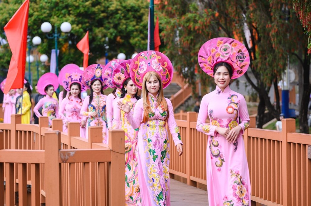 Hình ảnh các nữ doanh nhân thướt tha trong tà áo dài không chỉ tôn vinh nét duyên dáng, nền nã, mà còn gợi lên chân dung bản lĩnh của những người phụ nữ đang từng bước khẳng định vị thế trong đời sống kinh tế – xã hội hôm nay.