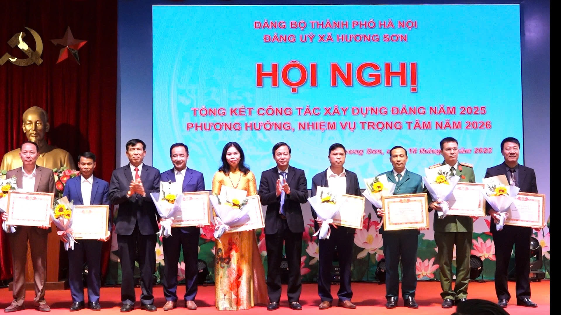 Phát biểu tại hội nghị, Bí thư Đảng ủy, Chủ tịch HĐND xã Hương Sơn Trần Đức Hải nhấn mạnh, những kết quả đạt được trong năm 2025 là nền tảng quan trọng để địa phương tiếp tục phát triển bền vững; yêu cầu xã đẩy mạnh cải cách hành chính, chuyển đổi số, chăm lo an sinh xã hội, chuẩn bị tốt các điều kiện tổ chức Lễ hội chùa Hương năm 2026 và cuộc bầu cử đại biểu Quốc hội, HĐND các cấp nhiệm kỳ 2026-2031... Nhân dịp này, Đảng ủy xã Hương Sơn đã khen thưởng 22 tập thể và 29 cá nhân tiêu biểu.