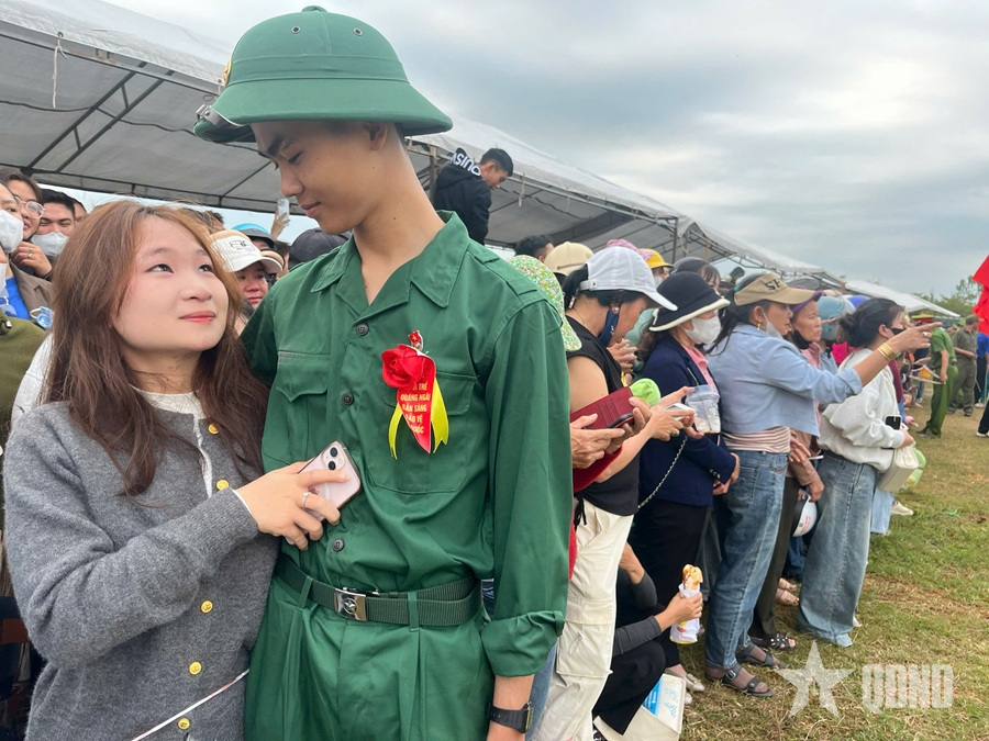 Và đâu đó, giữa không khí rộn ràng ấy, có những cuộc chia tay lưu luyến, những câu chuyện tình yêu mộc mạc, những món quà nhỏ, những lời căn dặn như gửi gắm niềm tin hoàn thành xuất sắc nhiệm vụ của hậu phương đến các chiến sĩ.