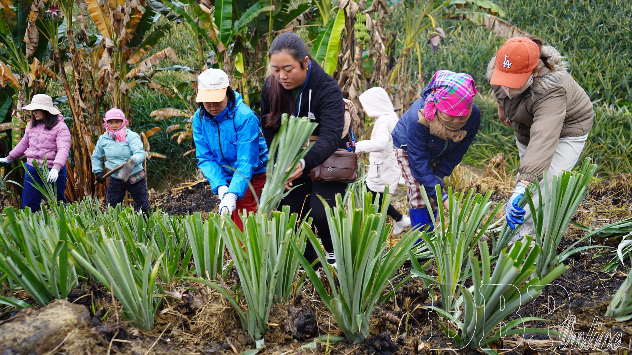 Cán bộ xã Na Sang cùng người dân trồng dứa, quyết tâm đưa dứa Na Sang trở thành sản phẩm chủ lực, mang thương hiệu riêng có của vùng.