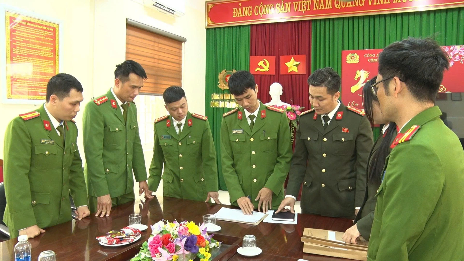 Công an xã Đồng Tiến họp bàn phương án bảo vệ bầu cử.