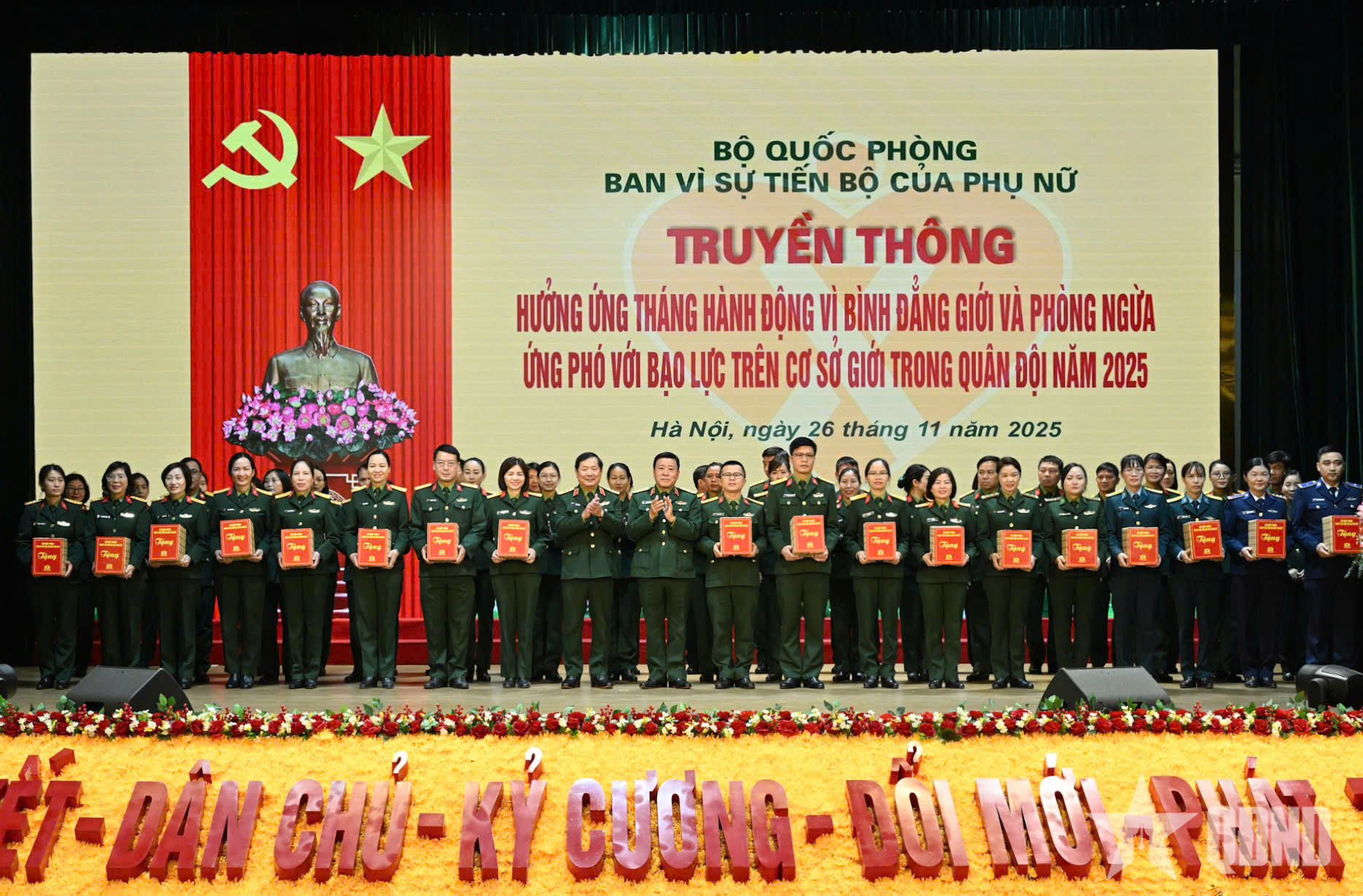 Trong khuôn khổ chương trình, Ban VSTBCPN Bộ Quốc phòng trao quà tặng 55 gia đình tiêu biểu thuộc các cơ quan, đơn vị đóng quân trên địa bàn thành phố Hà Nội.
