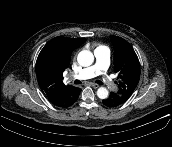 Hình ảnh chụp CT mạch máu phổi của bệnh nhân cho thấy huyết khối lớn bít tắc động mạch phổi hai bên