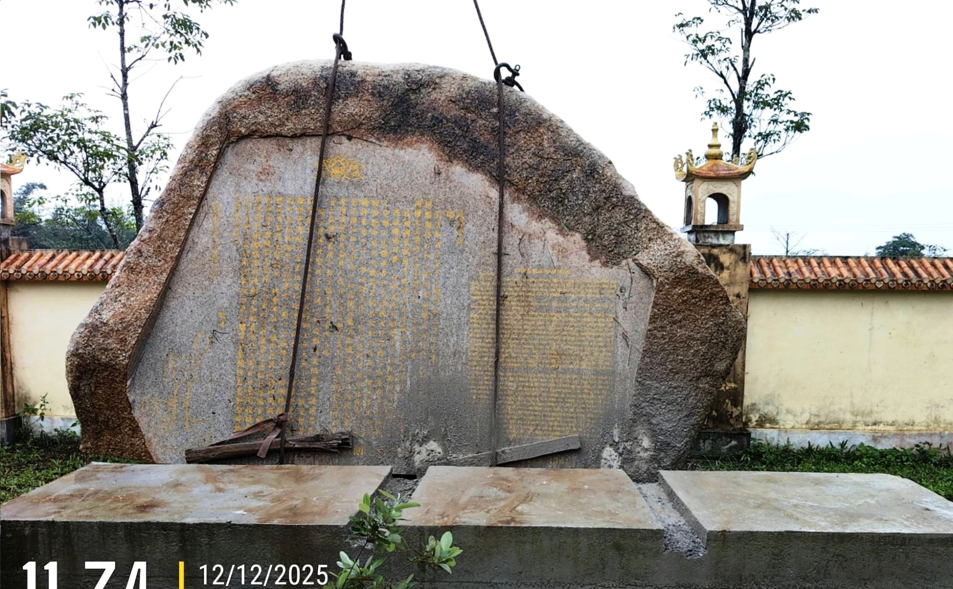 Tấm bia đá khắc Chiếu Cần Vương được đặt trong khuôn viên Đền thờ vua Hàm Nghi và các tướng sĩ Cần Vương, thuộc Di tích quốc gia Thành Tân Sở - Ảnh: ĐV