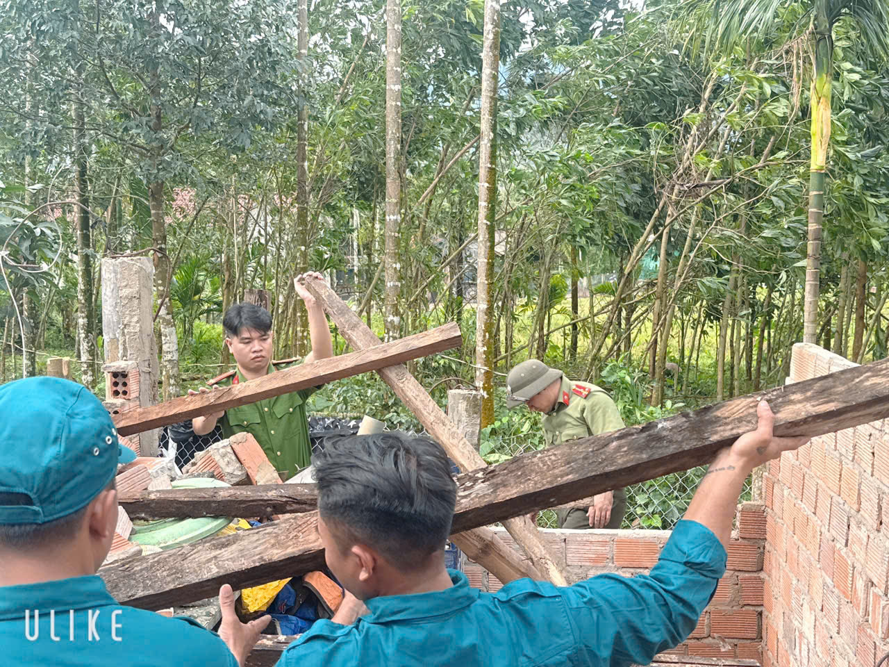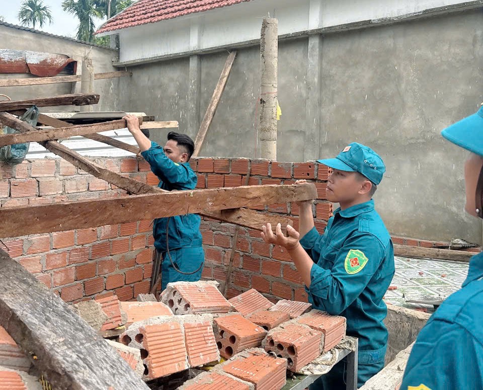 Theo đó, lực lượng công an, quân sự, dân quân, đoàn viên thanh niên và các đoàn thể được huy động hỗ trợ người dân sửa chữa nhà bị tốc mái, dọn dẹp cây xanh gãy đổ, đảm bảo an toàn khu dân cư.