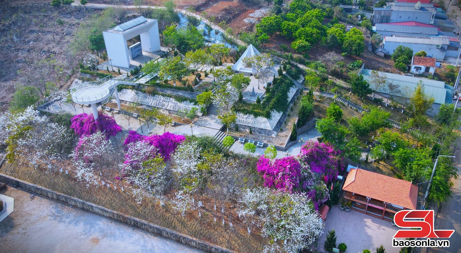Di tích lịch sử lưu niệm Trung đoàn 52 Tây Tiến được đầu tư tôn tạo với thiết kế nhiều hạng mục lớn, mang chủ đề ý nghĩa. Ảnh PV