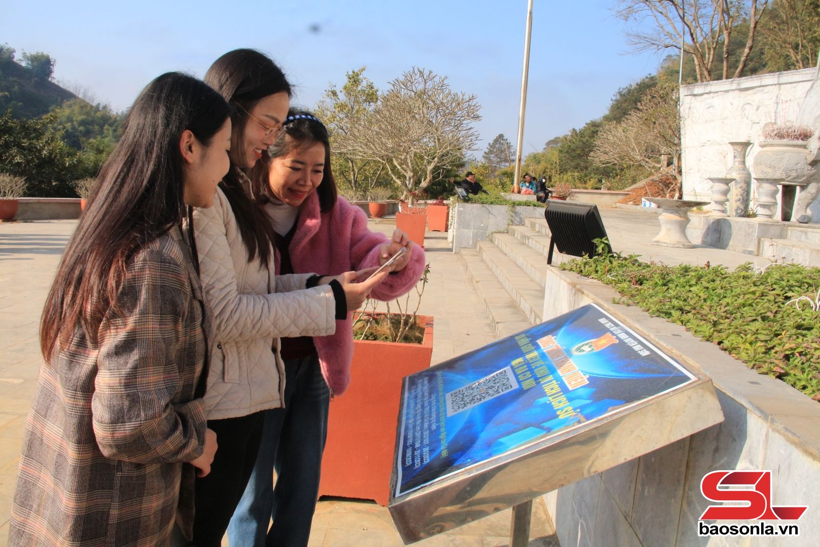 Du khách quét mã QR giới thiệu khu di tích lịch sử Ngã ba Cò Nòi.