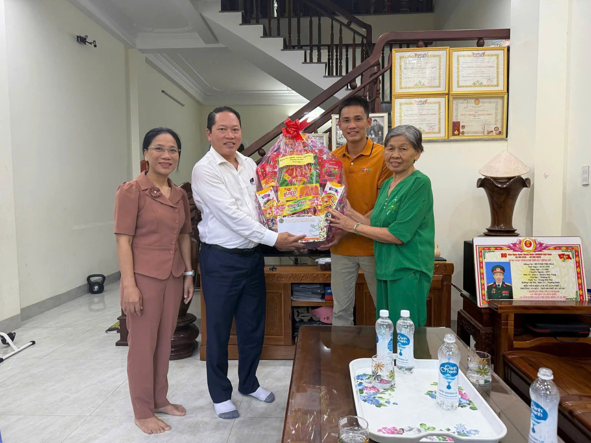 Lãnh đạo UBND phường An Hải trao quà cho gia đình chính sách trên địa bàn phường.