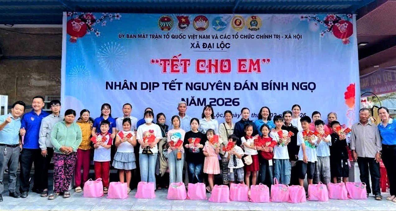* Ủy ban MTTQ Việt Nam xã Đại Lộc vừa phối hợp các tổ chức chính trị - xã hội tổ chức nhiều hoạt động chăm lo người nghèo, người có hoàn cảnh khó khăn dịp Tết Nguyên đán Bính Ngọ 2026.