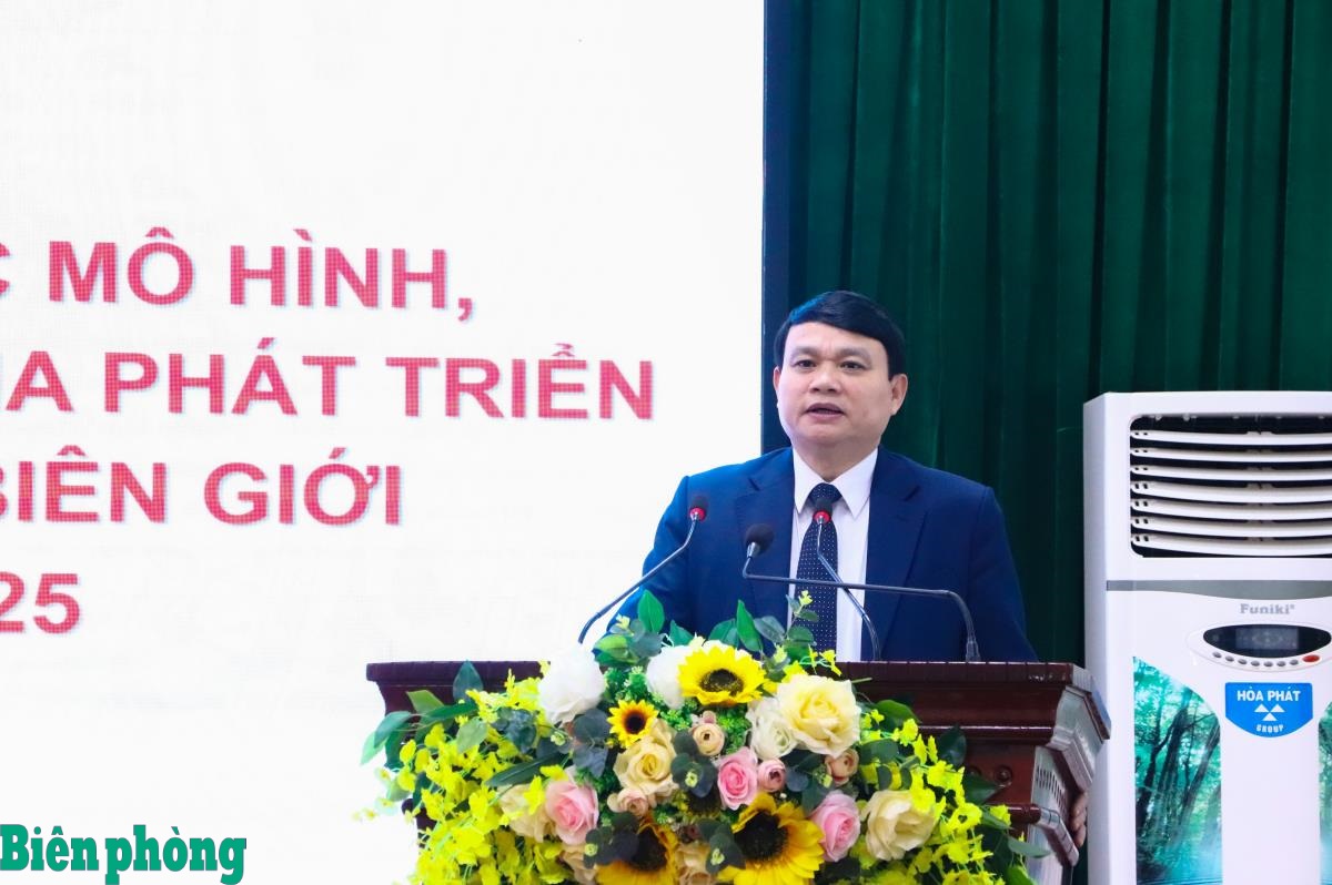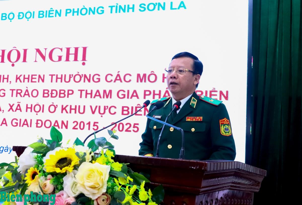 Tại hội nghị, Đại tá Phạm Tùng Lâm, Bí thư Đảng ủy, Chính ủy Bộ đội Biên phòng tỉnh Sơn La trình bày báo cáo tổng kết 10 năm triển khai các mô hình, chương trình, phong trào tham gia phát triển kinh tế, văn hóa, xã hội ở khu vực biên giới giai đoạn 2015 - 2025.