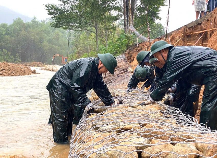 Lực lượng Quân đội đang khẩn trương khắc phục điểm sạt lở
