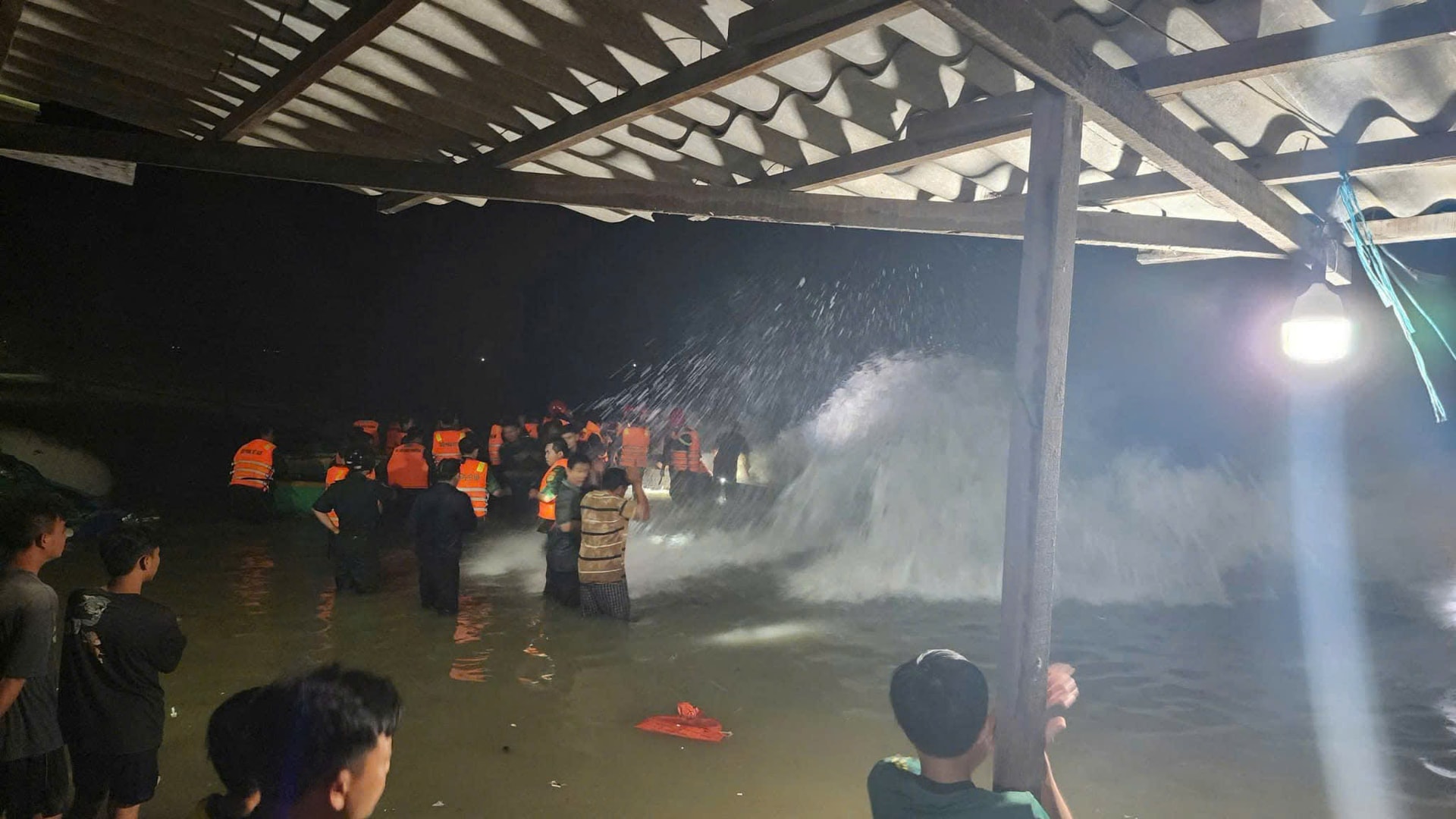 Khoảng 15 giờ 50 phút cùng ngày, ông Huỳnh Vũ (SN 1992) và ông Dương Quang Sơn (SN 1985), cùng trú tại thôn 9 Liên Hương, xã Liên Hương, bơi thúng ra khu vực cửa sông Liên Hương để vớt lại chiếc neo bị chìm trước đó. Tuy nhiên, sóng lớn tại cửa sông đã đánh lật thúng.