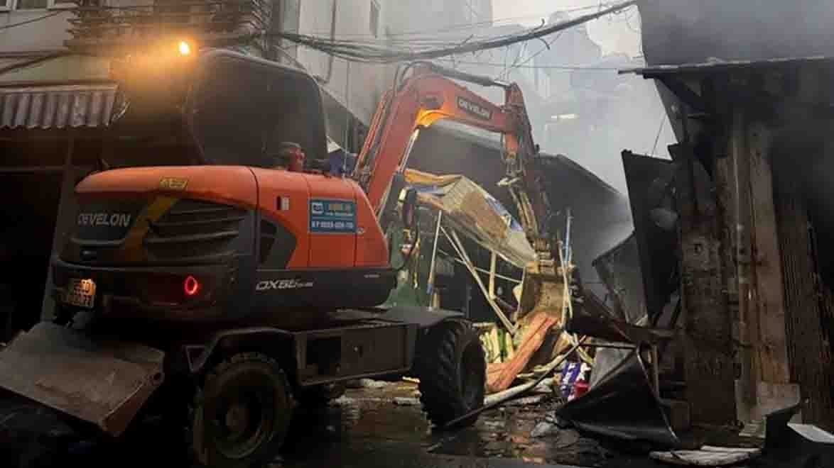Ông Đặng Khánh Hòa - Chủ tịch UBND phường Phương Liệt, Hà Nội cho biết: "Trong quá trình tiếp cận hiện trường gặp nhiều khó khăn, lực lượng chức năng đã huy động máy xúc phá dỡ cấu kiện sụp đổ, mở lối cho lực lượng Cảnh sát PCCC&CNCH tiếp cận tổ chức dập tắt đám cháy. Rất may vụ cháy không có thương vong về người, có khoảng hơn 10 ki ốt trong chợ bị cháy".