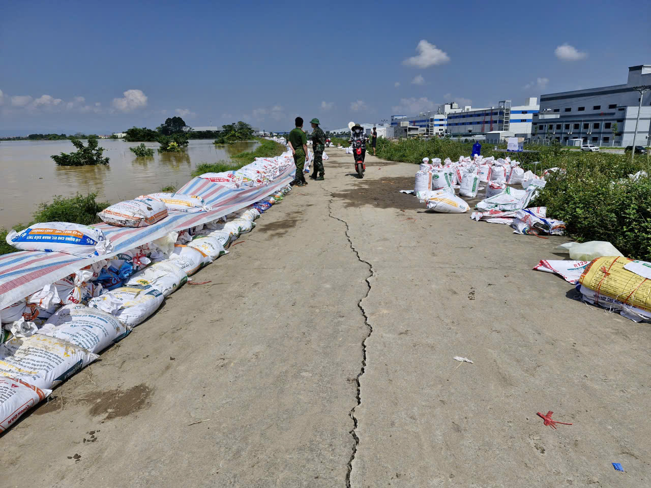 Trực tiếp tham gia hộ đê, trung tá Nguyễn Trung Kiên, Trưởng Ban Quân báo trinh sát, Bộ chỉ huy quân sự tỉnh Bắc Ninh cho biết: Trong sáng nay, Bộ Chỉ huy quân sự tỉnh Bắc Ninh đã huy động 260 cán bộ, chiến sĩ đến hộ đê tại khu công nghiệp Hòa Phú. Nhiệm vụ của đơn vị là sử dụng vật liệu tại chỗ đắp đê cao khoảng nửa mét, bao quanh, không cho nước lũ tràn vào khu công nghiệp.