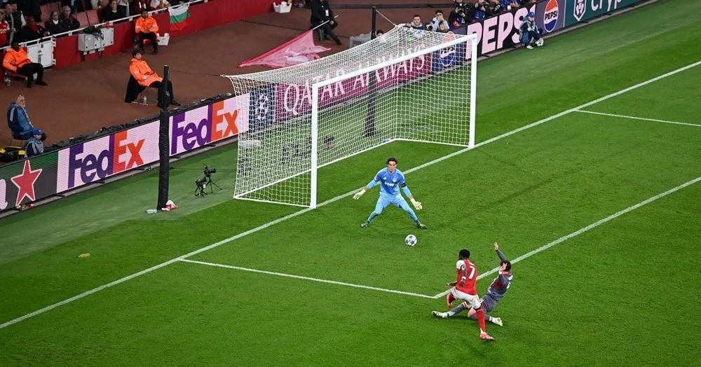 Tình huống Saka ghi bàn ấn định chiến thắng 2-0 cho “pháo thủ” trước Olympiacos. (Ảnh: Arsenal).