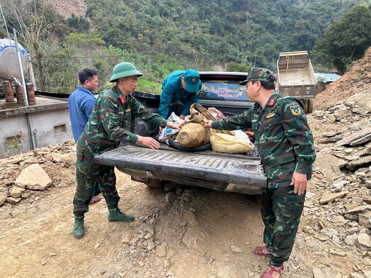 Ngay lập tức, Ban Chỉ huy Quân sự xã Tương Dương báo cáo cấp ủy chính quyền địa phương, phối hợp với các lực lượng chức năng tiến hành sơ tán người dân, gia súc ra khỏi vùng nguy hiểm; tổ chức khoanh vùng, cắm biển báo hiệu nguy hiểm, cắt cử lực lượng canh gác 24/24 giờ.