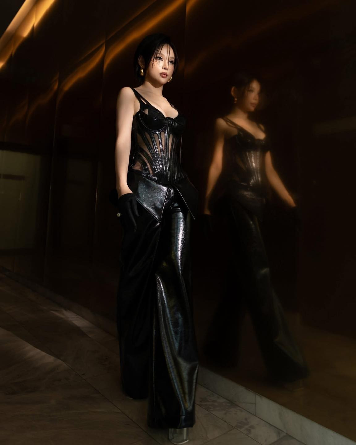 Lần lộ diện mới đây, "phú bà" Huyền Baby khiến ai cũng ngỡ ngàng với gương mặt vô cùng cá tính khi trang điểm theo tông màu trầm. Đặc biệt, việc diện trang phục bó sát giúp cô khoe trọn vòng eo không chút mỡ thừa và vòng 1 đầy đặn.