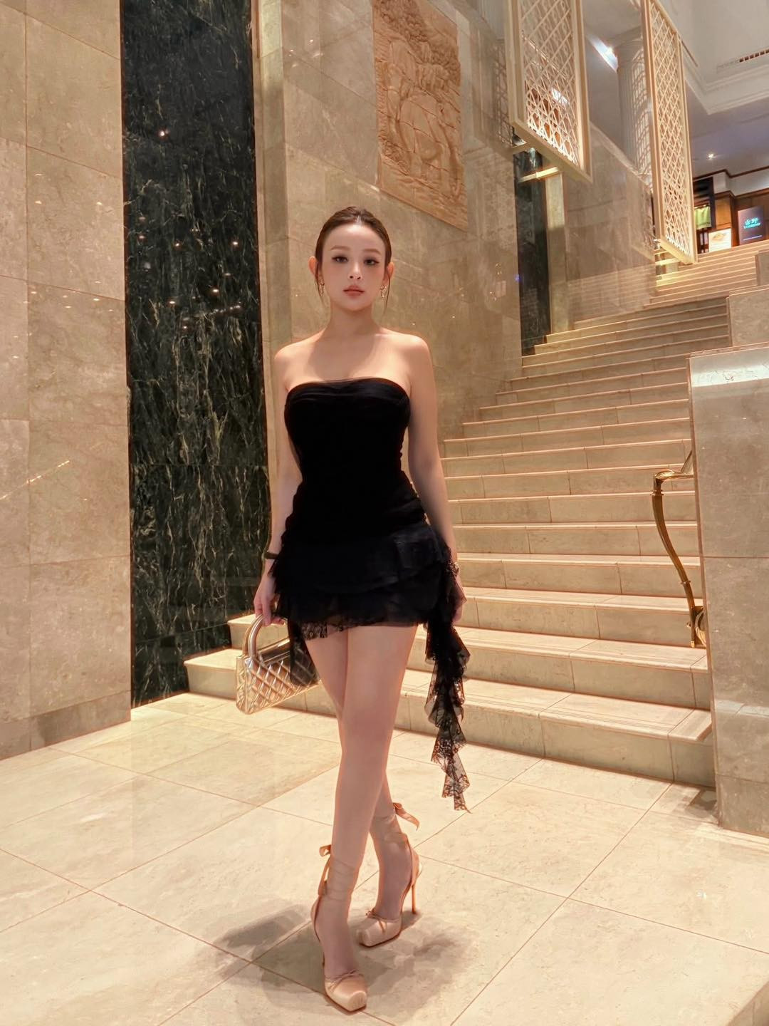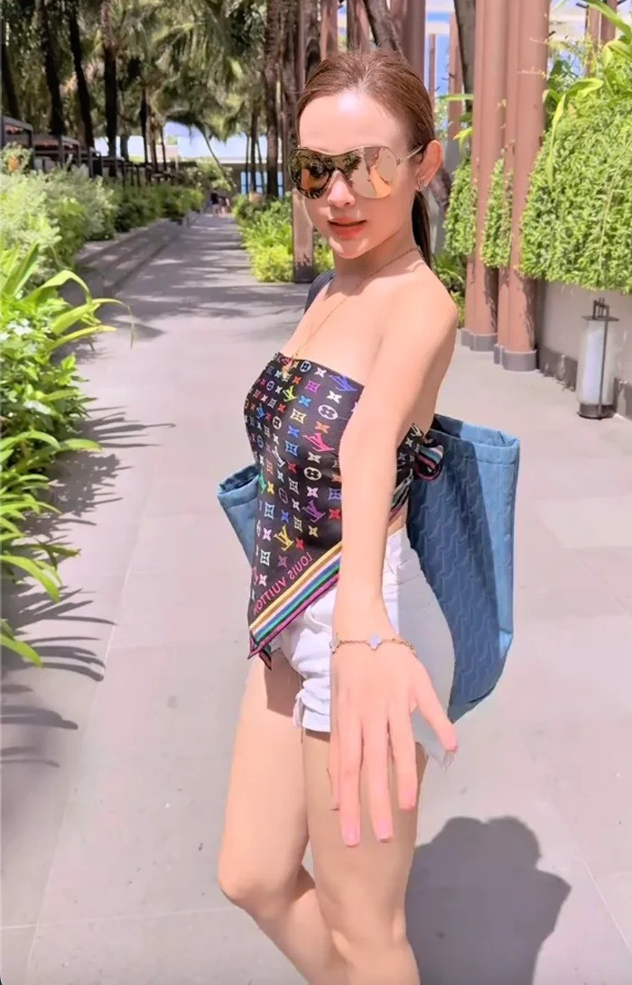 Cách phối đồ này không chỉ giúp 'phú bà' khoe trọn bờ vai trần, xương quai xanh quyến rũ mà còn thể hiện sự sáng tạo và đẳng cấp "chơi" đồ hiệu.