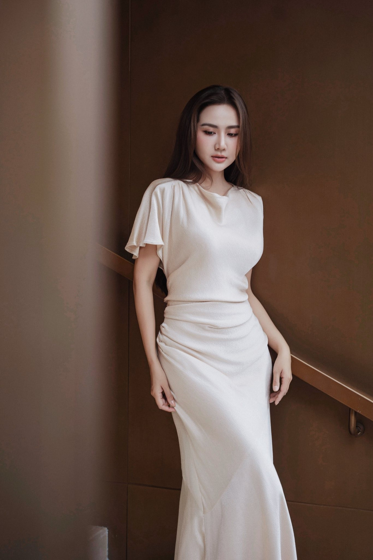 Khác với hình ảnh hiện đại, quyến rũ thường thấy, nữ diễn viên Huyền Lizzie (Phan Minh Huyền) lựa chọn phong cách truyền thống, tôn lên vẻ đẹp dịu dàng, nền nã rất đặc trưng của người phụ nữ Việt Nam.