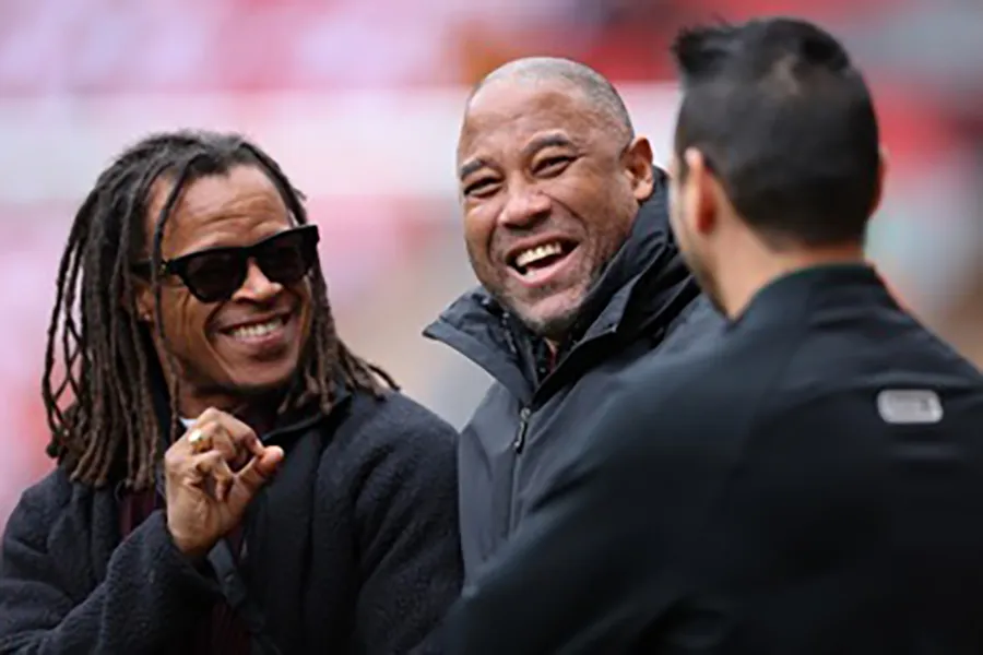 John Barnes (giữa) - huyền thoại của Liverpool phá sản. ẢNH: EPA