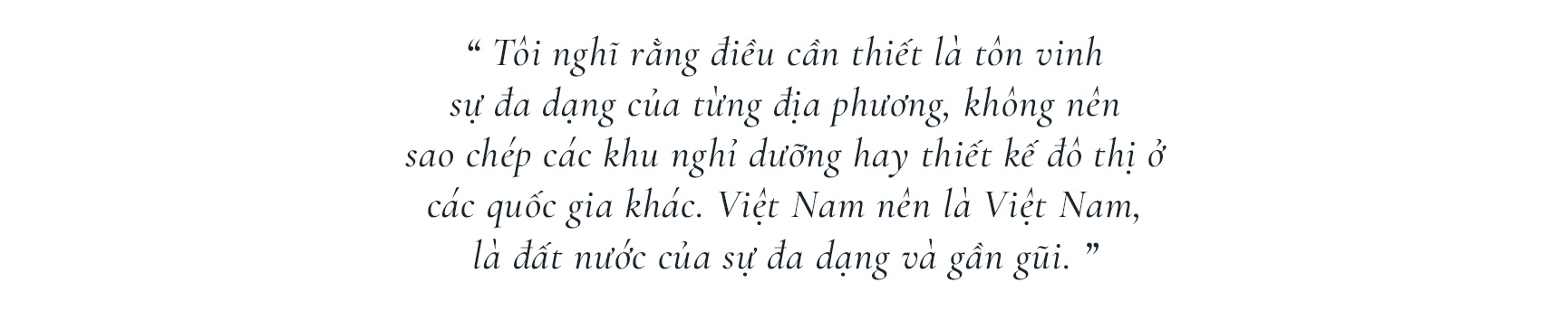 Tôi nghĩ Việt Nam không nên rơi vào "vết xe đổ" của Nhật Bản. Nơi đây chứa đựng nhiều kho báu tiềm ẩn, như Đà Lạt chẳng hạn, vẫn chưa được khai phá. Hãy nhận diện rõ bản sắc của từng vùng đất và đừng sao chép bất cứ nơi đâu.
