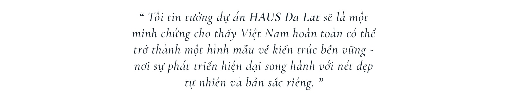 Vì vậy, tôi tin HAUS Da Lat sẽ là một trong những khu phức hợp nhà ở, nghỉ dưỡng độc đáo nhất mà tôi từng thiết kế.