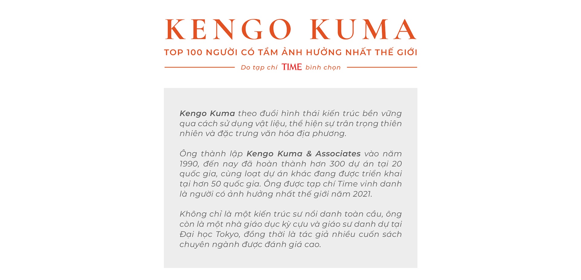 - Chào ông Kengo Kuma, cảm ơn ông đã nhận lời chia sẻ với độc giả của Tri Thức - Znews. Là huyền thoại thiết kế nổi danh toàn cầu với nhiều công trình biểu tượng, nổi tiếng với sự khó tính và kĩ lưỡng trong việc lựa chọn dự án, đối tác đồng hành, vì sao ông chọn Đà Lạt làm dấu ấn tiếp theo của mình? Chủ đầu tư dự án HAUS Da Lat đã thuyết phục ông bằng cách nào?