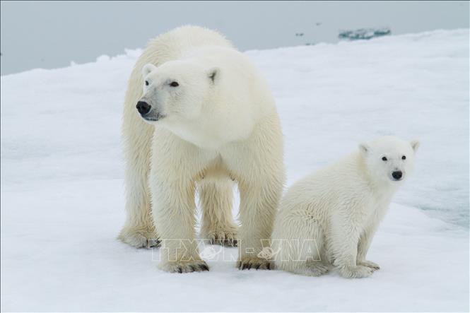 Gấu trắng Bắc Cực trên biển băng gần Svalbard, Na Uy. Ảnh tư liệu: AFP/TTXVN
