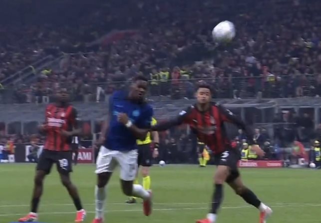 Xứng danh trận deby của 2 đội bóng hàng đầu Italia, cả 2 nhập cuộc hết sức “tôn trọng” đối thủ. Sự cân bằng trong thế trận, khiến cho trận đấu có ít những pha bóng hấp dẫn. Tuy nhiên, trong thế trận ấy, AC Milan đã tạo nên sự khác biệt. Phút thứ 35, Pervis Estupinan đón đường chọc khe tinh tế của Fofana, cầu thủ người Ecuador tung cú sút quyết đoán bằng chân trái mở tỉ số cho AC Milan. Sau bàn mở tỉ số, AC Milan chỉ suýt có bàn thứ 2 ở phút 39, nhưng Saelemaekers đệm bóng không thành từ cự ly hơn 10m. Hiệp 1 khép lại với tỉ số 1-0 nghiêng về Rossoneri.