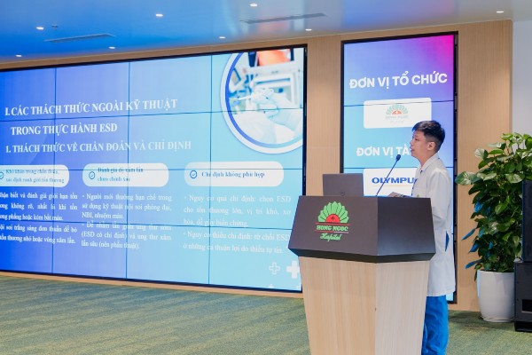 Cũng tại Hội thảo, TS.BS Trần Đức Cảnh, Phó Trưởng khoa Nội soi - Thăm dò chức năng, Bệnh viện K và Bác sỹ Nguyễn Tiến Sơn, Phó trưởng Khoa Tiêu hóa, BVĐK Hồng Ngọc – Phúc Trường Minh đã trình bày báo cáo chuyên sâu, chia sẻ kinh nghiệm thực tiễn trong xử lý các ca ESD phức tạp trên bệnh nhân có nhiều bệnh nền.