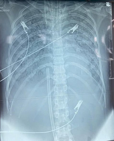 Bệnh nhân được chuyển khoa Hồi sức tích cực với chẩn đoán sốc nhiễm trùng, viêm phổi biến chứng ARDS mức độ nặng, tổn thương cơ tim cấp, suy đa tạng. Dù được can thiệp kịp thời, tình trạng bệnh nhân nhanh chóng diễn tiến xấu với rối loạn tri giác, suy hô hấp nặng phải đặt nội khí quản, thở máy xâm nhập. Mặc dù đã thở máy tối ưu kết hợp ba loại thuốc vận mạch, trợ tim liều cao, bệnh nhân vẫn không đạt mục tiêu oxy hóa máu và huyết áp, nguy cơ tử vong rất cao.