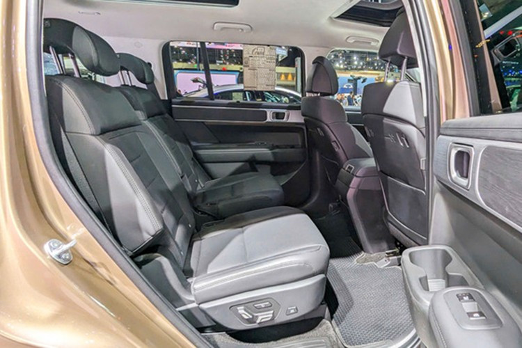 Nội thất bọc da với ghế trước chỉnh điện, làm mát và sưởi; hàng ghế thứ hai dạng thương gia có chỉnh điện và chế độ thư giãn; trong khi hàng ghế thứ ba có thể gập 50:50 để mở rộng không gian chứa đồ.