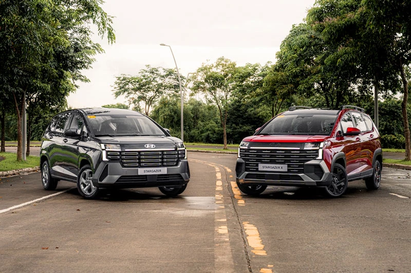 Tại thị trường Philippines, Hyundai Stargazer 2026 có 5 tùy chọn màu ngoại thất gồm trắng ngọc trai Creamy White Pearl, đỏ Dragon Red Pearl, bạc Magnetic Silver Metallic, đen Midnight Black Pearl và xám Titan Gray Metallic. MPV này cạnh tranh trực tiếp với Mitsubishi Xpander, Toyota Veloz, Suzuki Ertiga Hybrid… Giá niêm yết các phiên bản cụ thể như sau:
