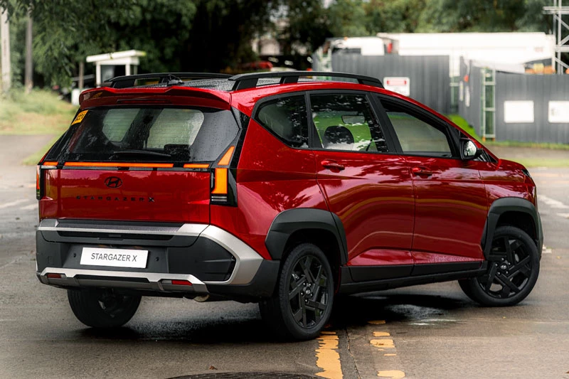 Riêng Hyundai Stargazer X 2026 được bổ sung giá nóc thể thao, ốp vòm bánh xe đen nhám và mâm hợp kim 17 inch sơn đen nhằm nhấn mạnh phong cách SUV đô thị. Bản Stargazer tiêu chuẩn vẫn sử dụng mâm hợp kim 17 inch màu bạc với thiết kế mới. Cả hai phiên bản đều duy trì khoảng sáng gầm 205 mm, phù hợp cho điều kiện di chuyển tại các đô thị Đông Nam Á.